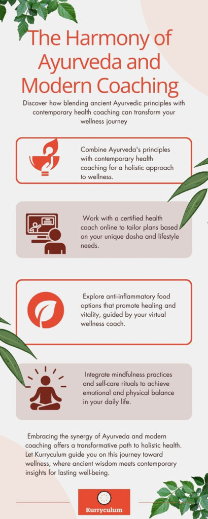 At Kurryculum, we believe that true wellness stems from a harmonious blend of ancient wisdom and contemporary practices. By merging the principles of Ayurveda with the insights of modern health coaching, we create a unique health perspective that empowers you to take control of your wellness journey. As an online holistic health coach, we are excited to guide you on this transformative path.