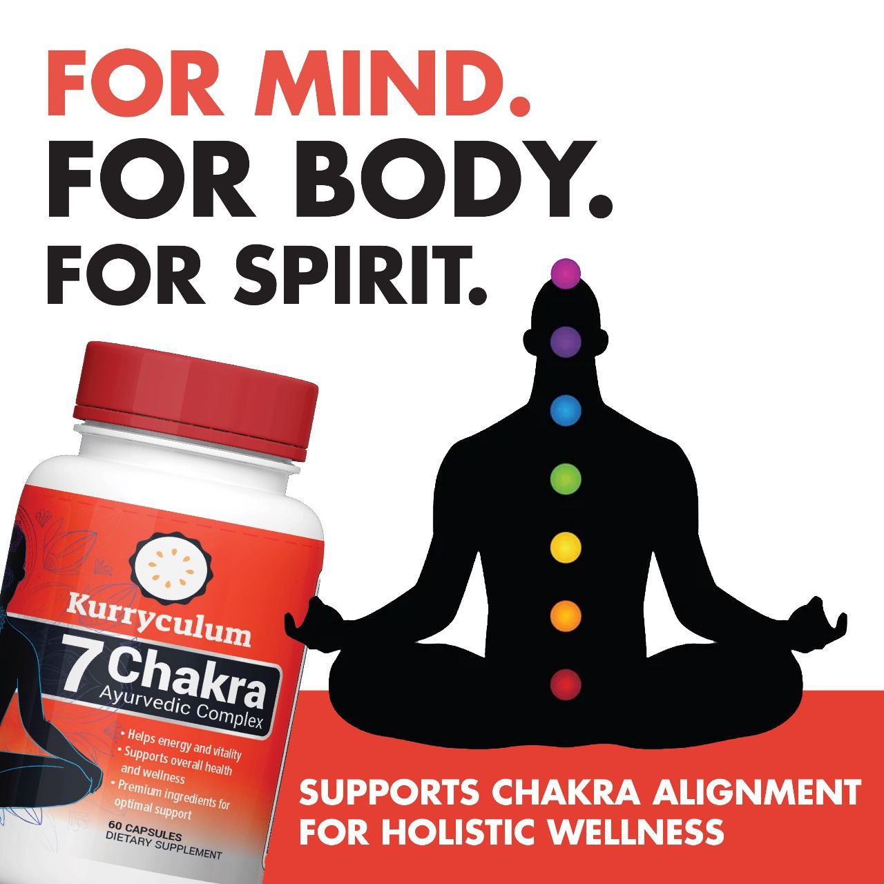 7 Chakra Ayurvedic Complex for Adults (60 Count) with Ashwagandha, Turmeric and Shilajit