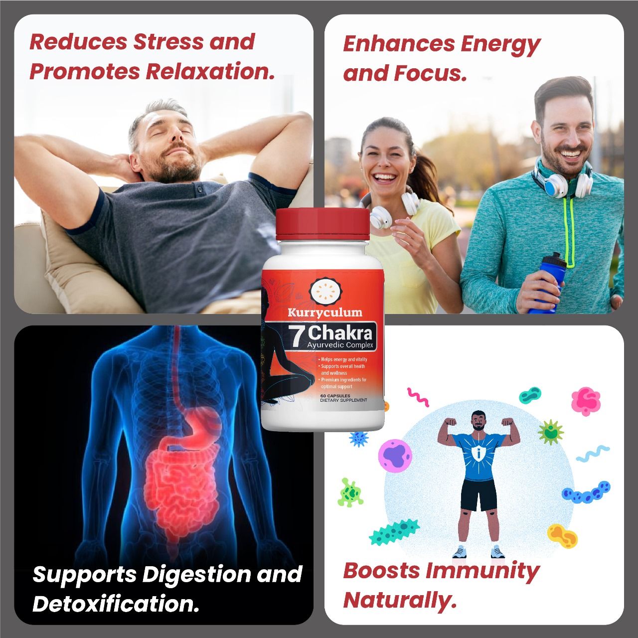 Unlock the harmonizing power of our 7 Chakra Ayurvedic Herbal Supplements, crafted with a potent blend of natural ingredients like Ashwagandha, Turmeric, and Shilajit. This Gluten-Free, Unisex formula aims to restore balance and vitality, promoting holistic wellness for mind, body, and spirit. Ashwagandha supports stress relief and overall well-being, while Turmeric aids in detoxification and healthy inflammation response. Shilajit enhances energy levels and supports cellular rejuvenation. Designed to help you achieve a state of harmony and balance, this 60-count supplement is the perfect addition to your wellness routine.