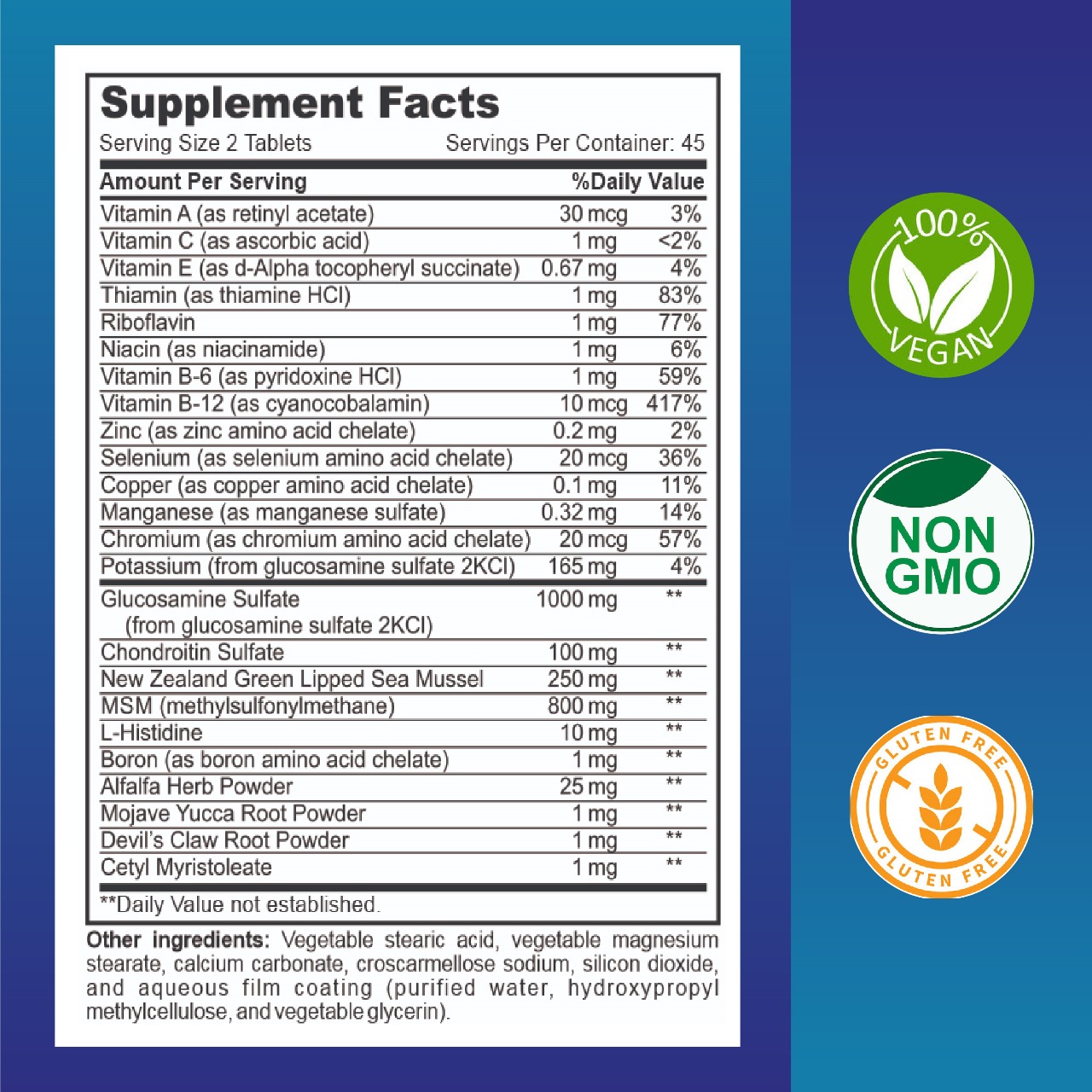 Kurryculum’s BoneVite+ is a comprehensive joint support supplement that combines a potent blend of Glucosamine, Chondroitin, MSM, and essential vitamins and minerals. Enriched with Alfa Alfa Herb Powder, Mojave Yucca, and Devil’s Claw root to promote joint comfort and reduce inflammation, this GMP-certified and gluten-free formula also contains Cetyl Myristoleate to enhance flexibility. Together, these ingredients work to maintain a healthy inflammatory response, promote smooth and easy movement, and support overall bone and joint health. With 90 tablets per bottle, BoneVite+ is designed to help you stay active and mobile.